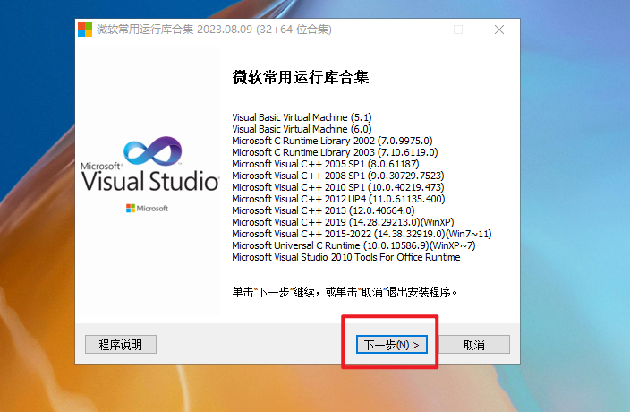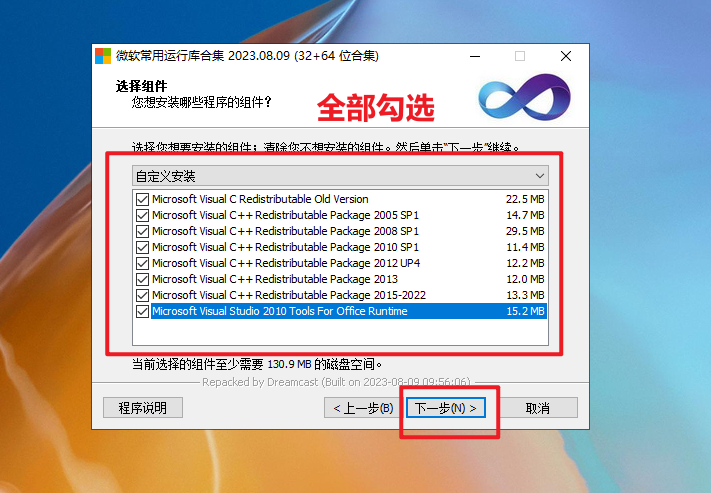 使用方法:如下图全部勾选,安装运行库后,即可解决